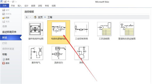 1、首先,打開(kāi)visio軟件,在新建中找到“工程”項(xiàng),雙擊打開(kāi),在“工程”欄中我們可以看見(jiàn)“電路和邏輯電路”選項(xiàng),選中該項(xiàng),則可新建空白電路和邏輯電路頁(yè)面,如kkx分享的圖片: