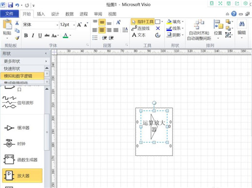 4、小編第一個(gè)添加的是個(gè)”放大器“,在其中添加完文本后在其內(nèi)部四周我們可以看到有4個(gè)圓圈分布,同樣雙擊選中這些圓圈,可進(jìn)行編輯,如添加放大器的正負(fù)極等,如kkx分享的圖片: