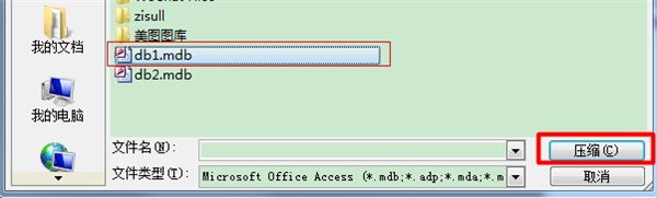 2、在“壓縮數(shù)據(jù)庫來源”對話框中找到并選中要進行壓縮和修復的Access文件,單擊“壓縮”按鈕;