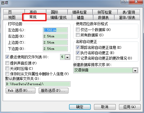 2、在“選項”對話框中切換到“常規(guī)”選項卡;