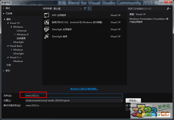 2、展開(kāi)已安裝,展開(kāi) Visual C++,選擇代碼,選擇了類(lèi)(.cpp)在名稱里面輸入3322.cs,點(diǎn)擊添加