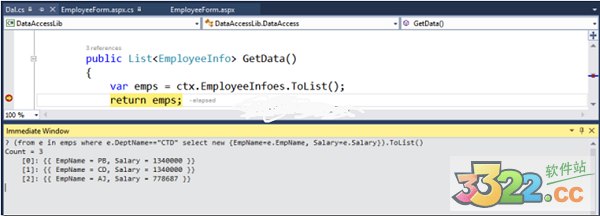 7、即時(shí)窗口中支持Lambda表達(dá)式和LINQ查詢