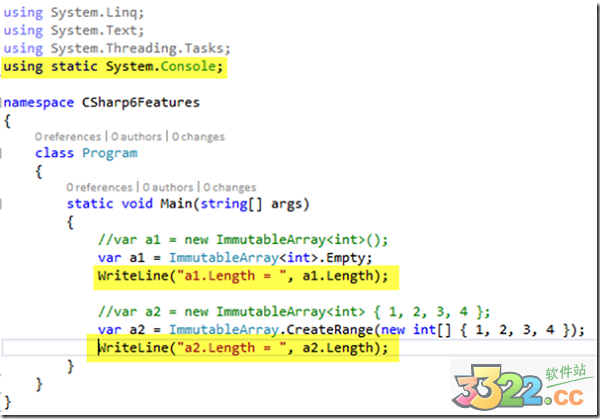 Console類(lèi)有一個(gè)WriteLine方法,現(xiàn)在可以直接在代碼中調(diào)用WriteLine方法而不用加Console類(lèi)型名稱,如下圖所示有點(diǎn)像C++語(yǔ)言的全局函數(shù),如果WriteLine方法在多個(gè)類(lèi)型中有定義,并且這幾個(gè)類(lèi)型都有加靜態(tài)引用(statis using),編譯時(shí)仍然會(huì)報(bào)錯(cuò)