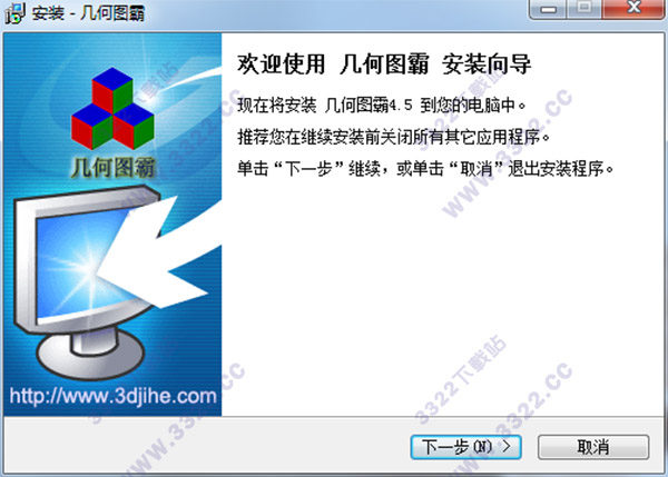 1、在kkx分享的地址獲取到幾何圖霸破解版壓縮包,解壓到文件夾運行主程序,點擊下一步,如kkx分享的截圖: