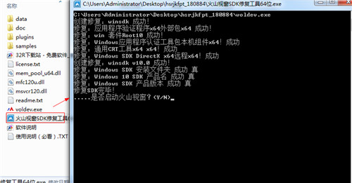2、雙擊運(yùn)行"火山視窗SDK修復(fù)工具64位.exe"程序,在命令行中輸入Y啟動(dòng)軟件,如kkx分享的截圖: