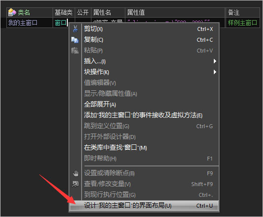 6、右鍵單擊該類,在所彈出來的菜單中選擇“設(shè)計(jì)我的主窗口的界面布局”,如kkx分享的截圖: