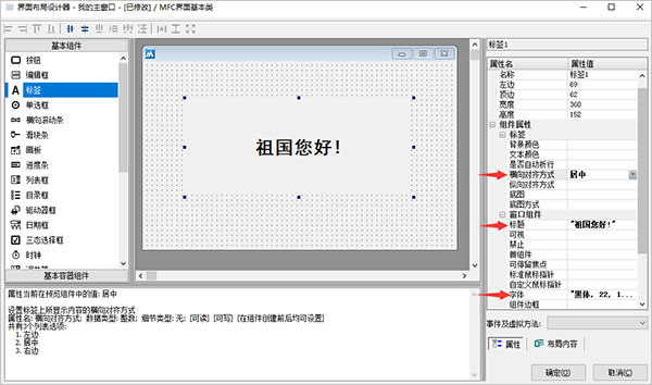 9、修改其“標(biāo)題”屬性為“祖國您好”,字體屬性可自行按需要修改,如kkx分享的截圖: