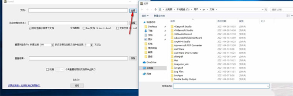 2、點(diǎn)擊選擇,彈出打開框,選擇要查重的文檔,添加至軟件。
