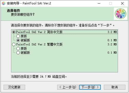 2、雙擊“[破解版]sai2-20200828.exe”依提示進行安裝;
