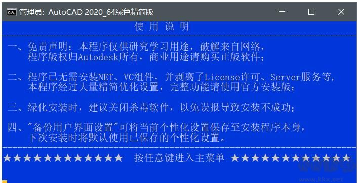 本程序僅供研究、學習用途,破解來自網(wǎng)絡, 請于24小時內刪除本程序,AutoCAD 2020版權歸Autodesk®所有,商業(yè)用途請購買正版軟件;