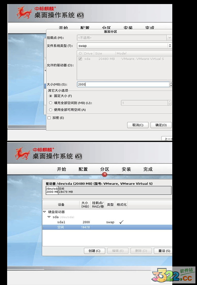 需要先建立2倍內(nèi)存大小的SWAP分區(qū).再建立/ 分區(qū)(建議20GB以上),/ 分區(qū)選擇在沒(méi)有數(shù)據(jù)的分區(qū)和未使用的分區(qū)上創(chuàng)建,避免損壞已有重要數(shù)據(jù)。
