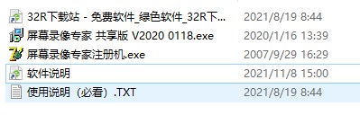 1、在本站下載并解壓得到屏幕錄像專家2020原程序和注冊機(jī);