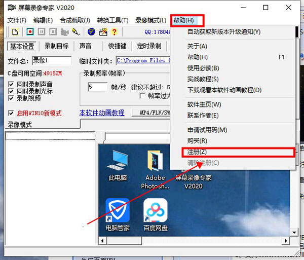 5、在軟件【幫助】菜單下,選擇【注冊】按鈕,打開注冊框;