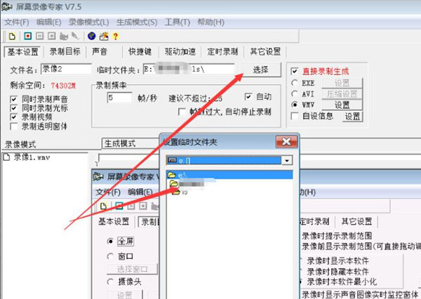 2、在“基本設(shè)置”界面中,選擇臨時文件夾,以后錄制生成的視頻都會放在這個文件夾中。