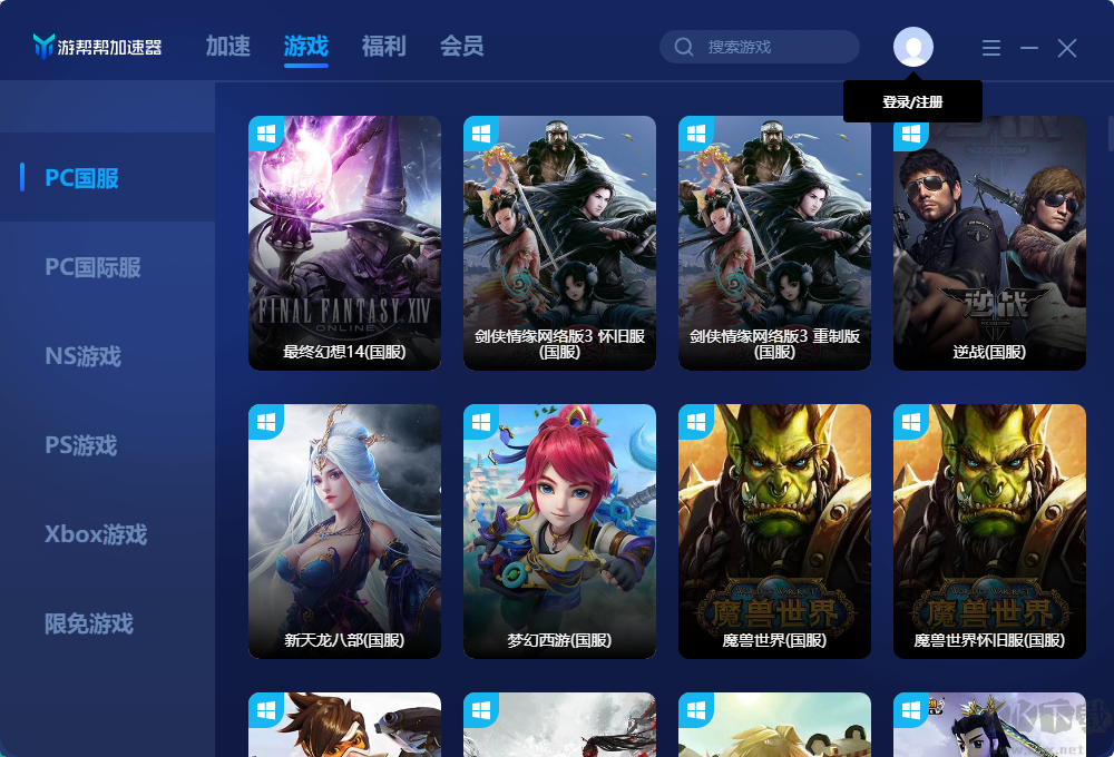 游幫助加速器提供安卓.IOS.Windows.Mac全平臺(tái)客戶端可以加速手機(jī)游戲//PC/Switch/PS/Xbox,一個(gè)帳戶可以加速整個(gè)平臺(tái)游戲。