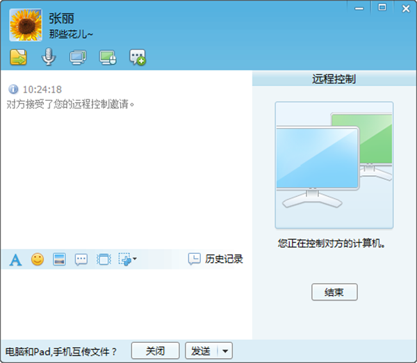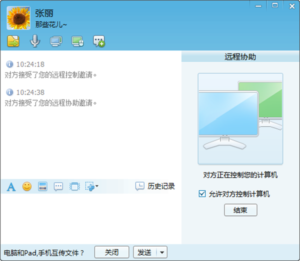 1、遠程控制,申請控制對方的計算機,對方接受請求后,可以查看對方計算機桌面并進行控制。