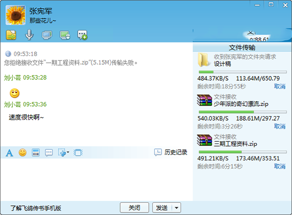 1、飛鴿傳書對文件傳輸做了很大的用戶改善,除了可以通過聊天窗口選擇發(fā)送文件,還可以將待發(fā)送文件直接拖到好友列表的頭像或聊天窗口內(nèi)實現(xiàn)發(fā)送。
