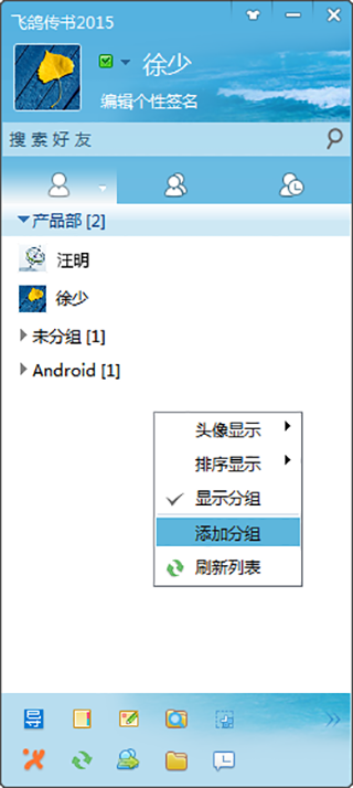 您可以通過右鍵菜單新建自定義分組,更好的管理好友列表,當這些自定義分組被刪除時,分組下的好友將恢復(fù)默認分組。