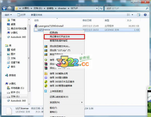 七、鼠標(biāo)右鍵點(diǎn)擊安裝包內(nèi)的“LG7.license”文件,點(diǎn)擊“用記事本打開(kāi)該文件”