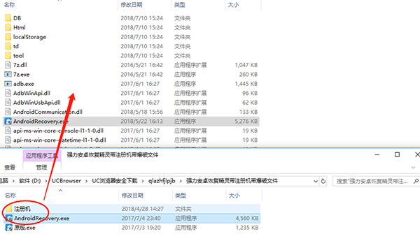 1、安裝好后首先不要運行,將【注冊機】中的文件和【AndroidRecovery.exe】文件復制到軟件安裝目錄中,如果被殺毒安全軟件提示報毒,忽略即可