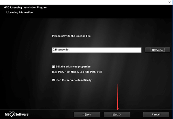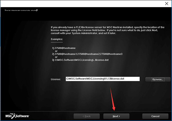 19、彈出授權(quán)激活界面,點(diǎn)擊Borwse...,選擇C:\MSC.Software\MSC.Licensing\11.13目錄下的“license.dat"文件