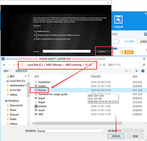 9、選擇在c盤生成的license.dat文件