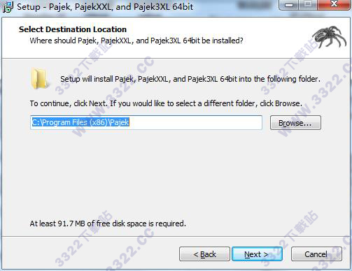 4、選擇Pajek安裝路徑,可默認(rèn)或點(diǎn)擊瀏覽更換安裝路徑,完成路徑選擇點(diǎn)擊Next