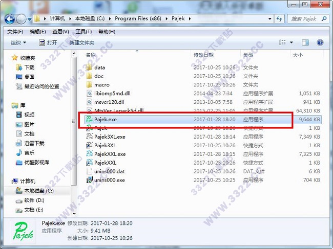 2、進(jìn)入Pajek的安裝路徑,默認(rèn)路徑為C:\Program Files (x86)\Pajek