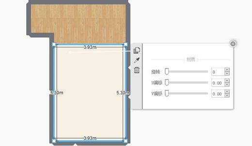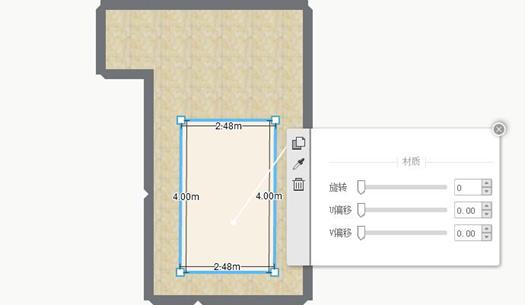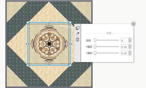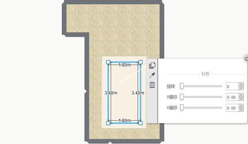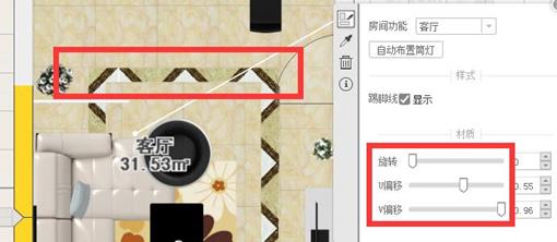 4、通過選中區(qū)域調(diào)節(jié)旋轉(zhuǎn)、U偏移、V偏移來(lái)達(dá)到在區(qū)域邊界展示整塊磚紋的效果