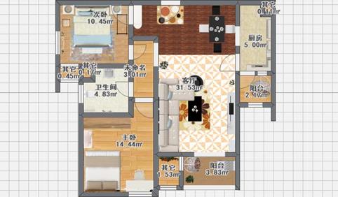 由于設(shè)計(jì)風(fēng)格的需要或者空間面積限制,很多業(yè)主家里選擇采用開放式空間結(jié)構(gòu),比如開放式廚房、開放式餐廳。這樣就形成了多個(gè)空間沒有墻體明顯分區(qū),業(yè)主通常采用不同地面材質(zhì)來(lái)達(dá)到區(qū)分空間作用。我們來(lái)看看如何通過畫區(qū)域功能在設(shè)計(jì)中實(shí)現(xiàn)地面分區(qū)效果