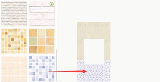 3、挑選不同材質(zhì)墻磚布置在兩個(gè)區(qū)域并調(diào)整偏移達(dá)到整磚展示效果