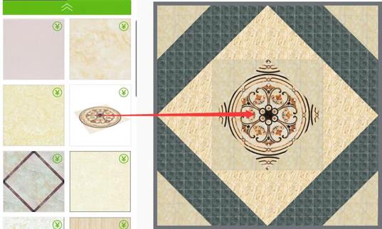 3、在左側(cè)模型庫(kù)中選擇硬裝-地磚/地板分類,分別拖動(dòng)不同材質(zhì)的地磚或地板至兩個(gè)區(qū)域