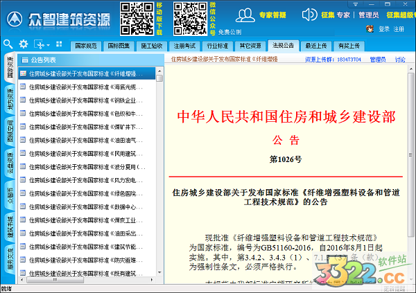 國(guó)家規(guī)范在這里眾智建筑規(guī)范向用戶提供了2016年最新最全的建筑規(guī)范資源供用戶查看及下載,例如建筑行業(yè)、城市規(guī)劃、結(jié)構(gòu)專業(yè)等等
