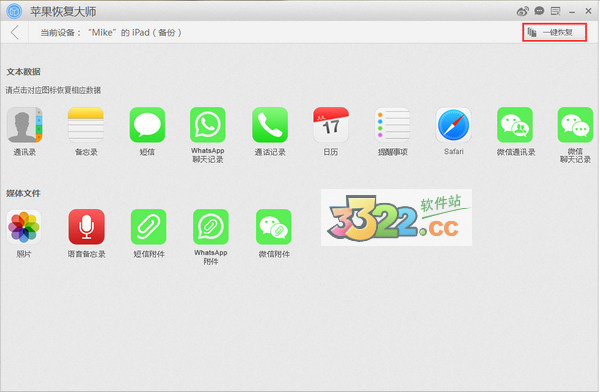 2、支持從早已存放的iTunes的備份恢復各種設備數據