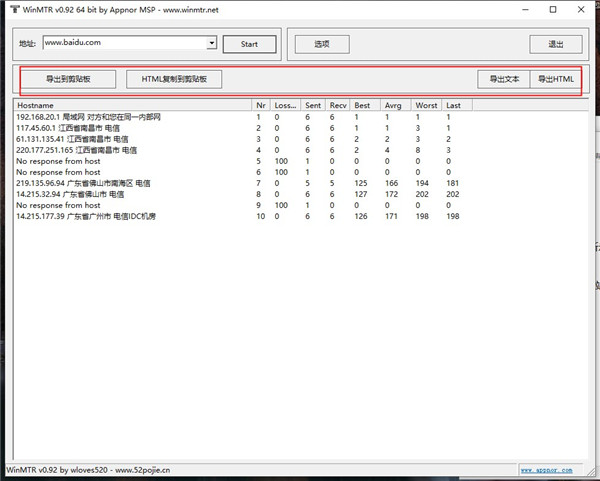 以上便是kkx給大家分享的WinMTR綠色漢化版!