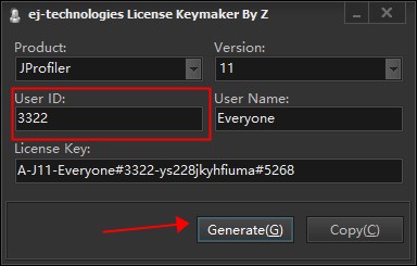 4、打開注冊機“KeyGen.exe”,輸入ID,點擊Generate按鈕生成注冊碼;