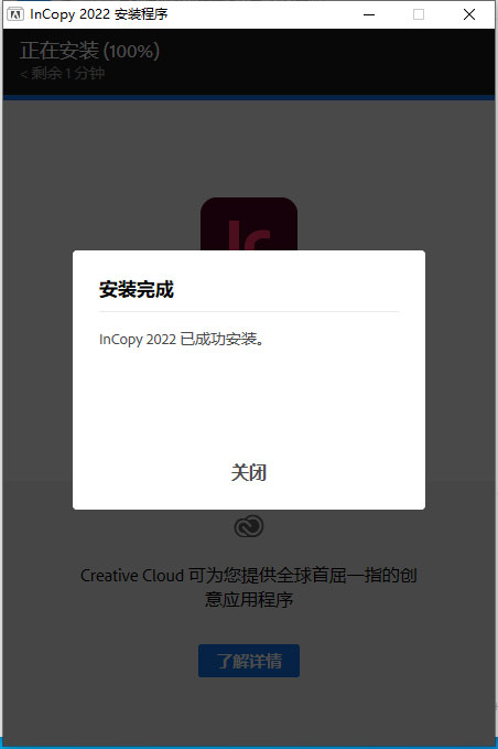5、安裝完成后點(diǎn)擊關(guān)閉;