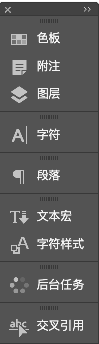 ①若要折疊或展開列中的所有面板圖標(biāo),請(qǐng)單擊停放區(qū)頂部的雙箭頭。