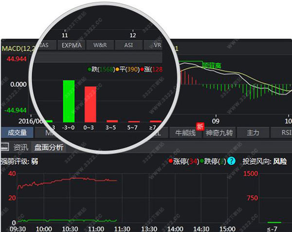 4、盤面分析數(shù)據(jù),時刻把握大盤強弱氣息,在最有把握的時候進入;