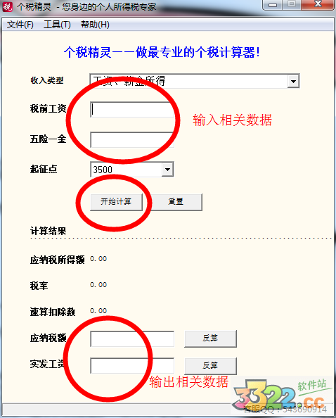 1、選擇收入類型、填寫收入總額、稅前扣除三險(xiǎn)一金、 起征額;