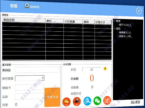 除基本超市收銀功能外,另包含獨有無條碼商品收銀功能