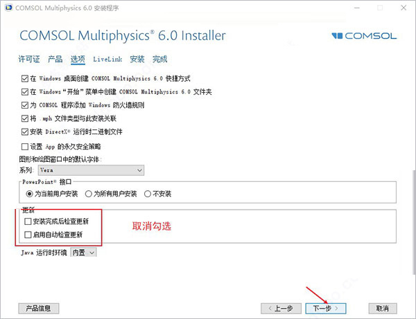 6、在這里先不要勾選“安裝完成后檢查更新”和“啟動自動檢查更新”;