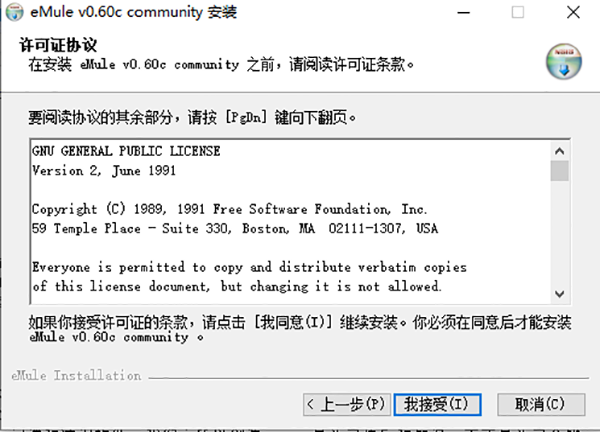 3、歡迎使用“eMule0.60c community”安裝程序,點擊下一步;