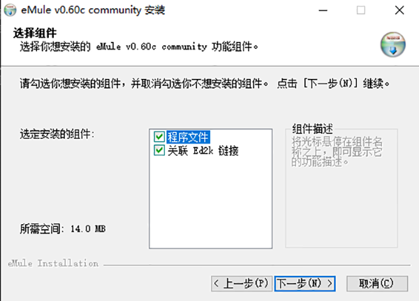 5、選擇要安裝的組件,需要14mb空間,默認即可點擊下一步;