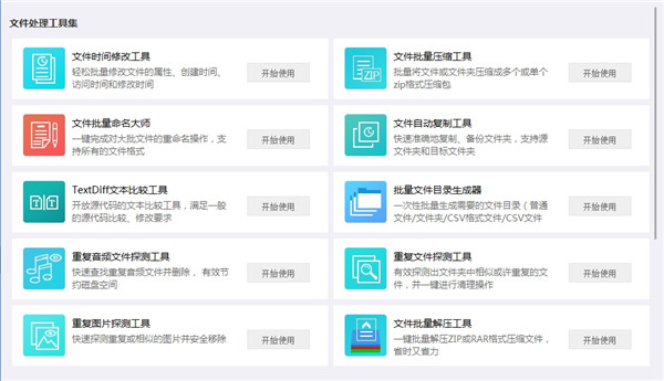 系列簡(jiǎn)單好用,功能強(qiáng)大的處理文件的工具集:包括文件目錄生成器、批量重命名、批量壓縮文件、重復(fù)圖片/音頻/文件探測(cè)、文件急速?gòu)?fù)制工具、文件重復(fù)查找工具、文件校驗(yàn)工具、文本比較工具等。