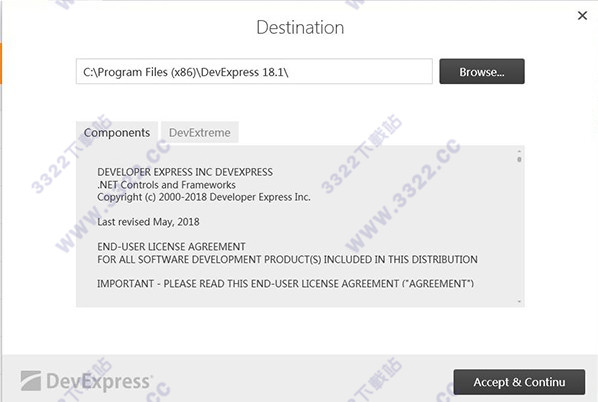 4、選擇安裝路徑,默認安裝為c盤,假如想要更換點擊Browse,然后點擊Accept&Continu