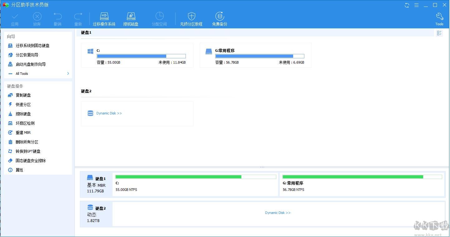 傲梅分區(qū)助手是一款非常強(qiáng)大的電腦分區(qū)管理工具,不管是你要分區(qū)、刪除分區(qū)、轉(zhuǎn)換分區(qū)、擴(kuò)展分區(qū)、合并分區(qū)、格式化、調(diào)整分區(qū)大小,4K對(duì)齊,檢測(cè)硬盤(pán)都可以使用傲梅分區(qū)助手來(lái)進(jìn)行操作,并且它是免費(fèi)的,你可以使用它的一切功能!傲梅分區(qū)助手推出的技術(shù)員版