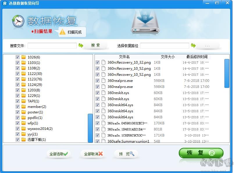 迅捷數(shù)據(jù)恢復(fù)軟件軟件界面功能: