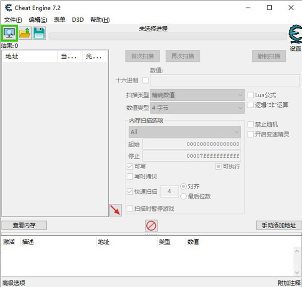 “首次掃描”將初始化作弊引擎中的數(shù)據(jù)結構,并讀取所選游戲的完整內存。如果您已經知道該值,它將在讀取值時掃描內存,并占用更少的內存。