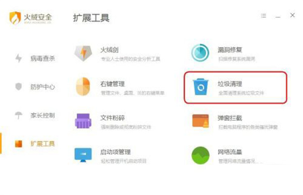 3、第三步,進(jìn)入火絨安全擴(kuò)展工具一欄,如圖示
